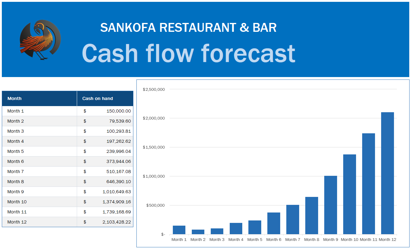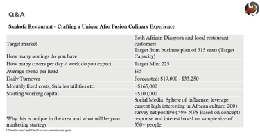 With meticulous financial planning and a robust operational strategy, we forecast revenue of ~ $6Mil in our first year. Significantly, we project positive cash flow within just six months of opening. Investing in Sankofa presents an exceptional opportunity to participate in a high-potential, profitable venture that will redefine the fine dining landscape with its innovative Afro fusion cuisine.